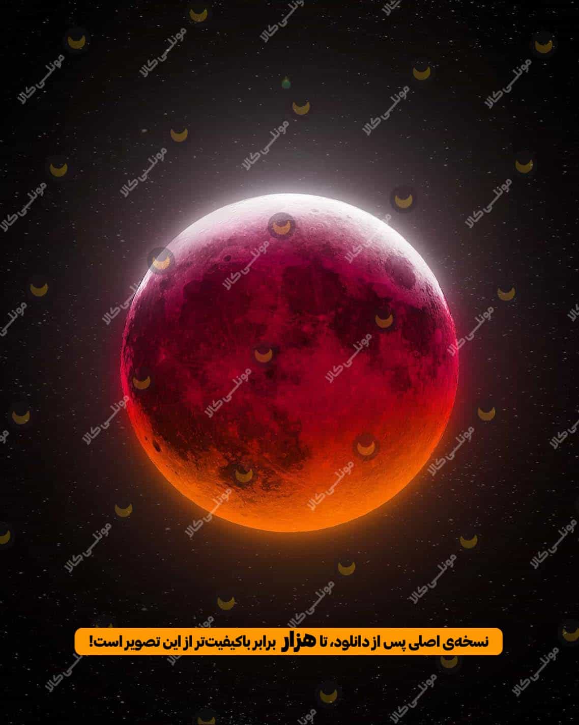 شدت تغییر رنگ افزایش یافته و ماه به طیفهای مسی، نارنجی تیره و سرخ درخشان درمیآید. این مرحله به لحاظ علمی، نشاندهنده بیشینه اثر نور بازتابشده زمین (Earthshine) بر سطح ماه است. ثبت این لحظه نیازمند استفاده از لنزهای سوپرزوم و حسگرهای حساس به نور پایین است تا کوچکترین جزئیات دهانهها، کوهها و بافتهای سطحی ماه حفظ شود. -